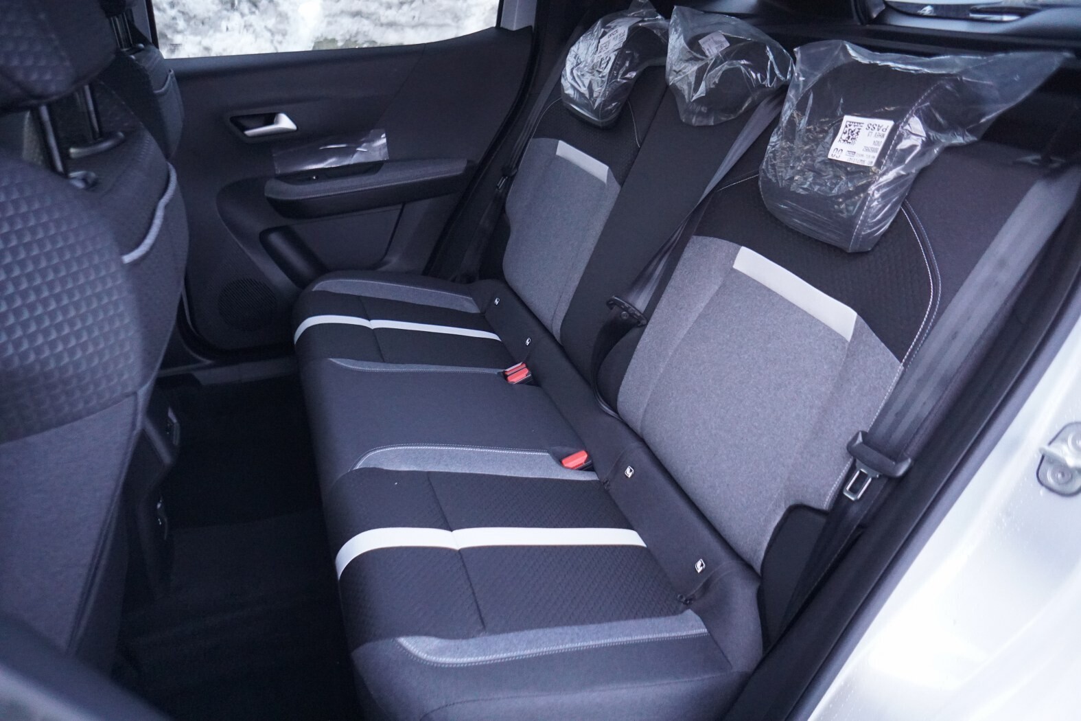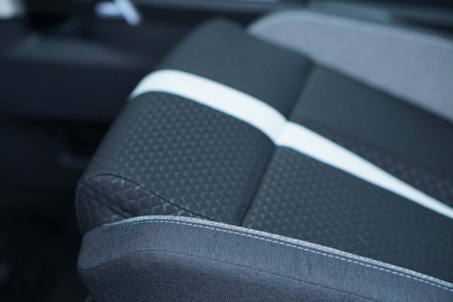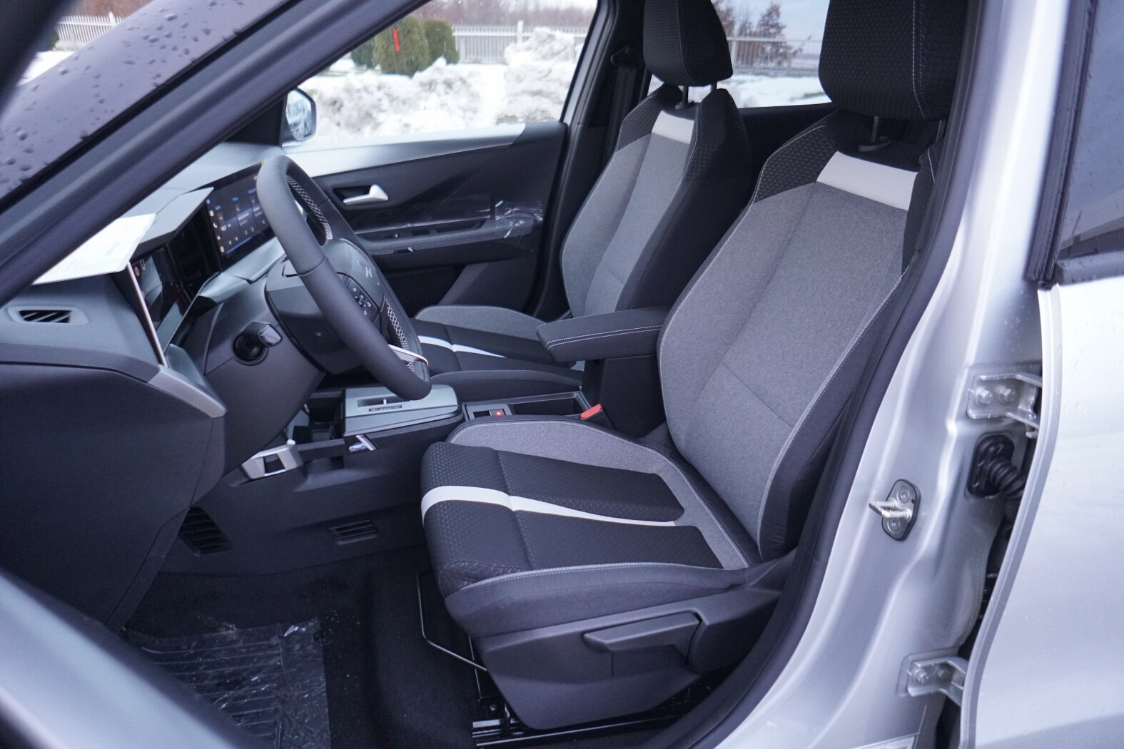 - Fotele przednie Intelli-Seats, czarno-szare. Ergonomiczne, ze szczeliną redukującą nacisk na kość ogonową. Regulowane w 6 kierunkach (regulacja wysokości tylko w fotelu kierowcy). Tapicerka z materiałów odnawialnych. Kieszenie z tyłu oparć