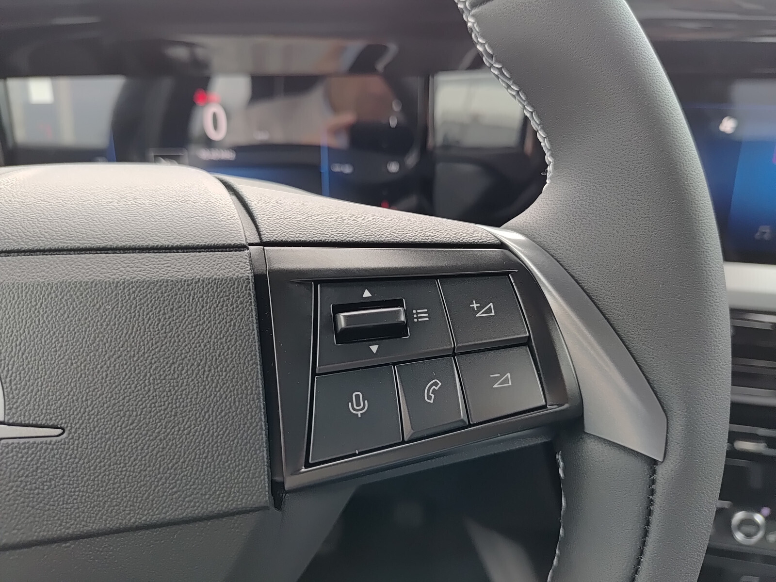 Sportowe koło kierownicy pokryte skórą ekologiczną, spłaszczone u dołu, z przyciskami sterowania Podgrzewane koło kierownicy