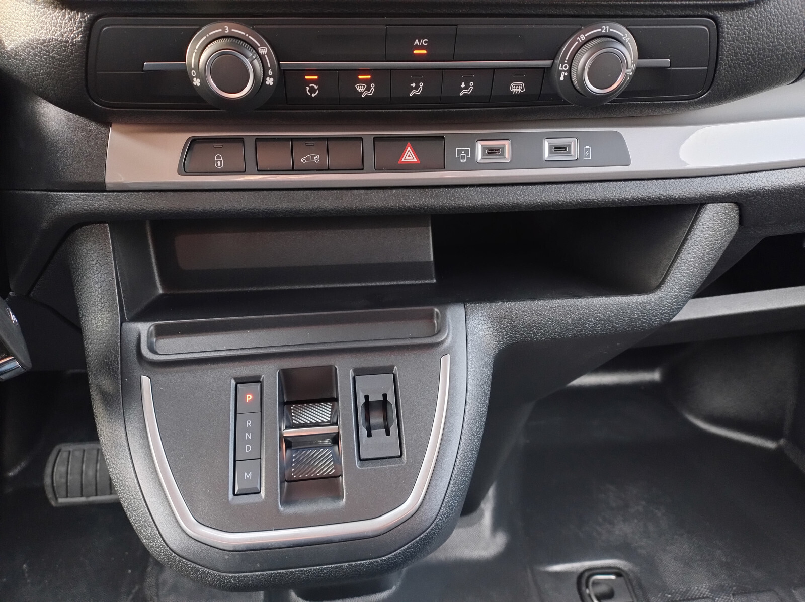Schowek na 2 smartfony w środkowej, dolnej części desce rozdzielczej
