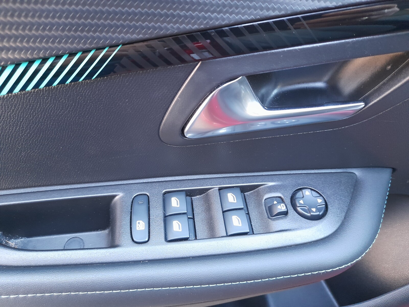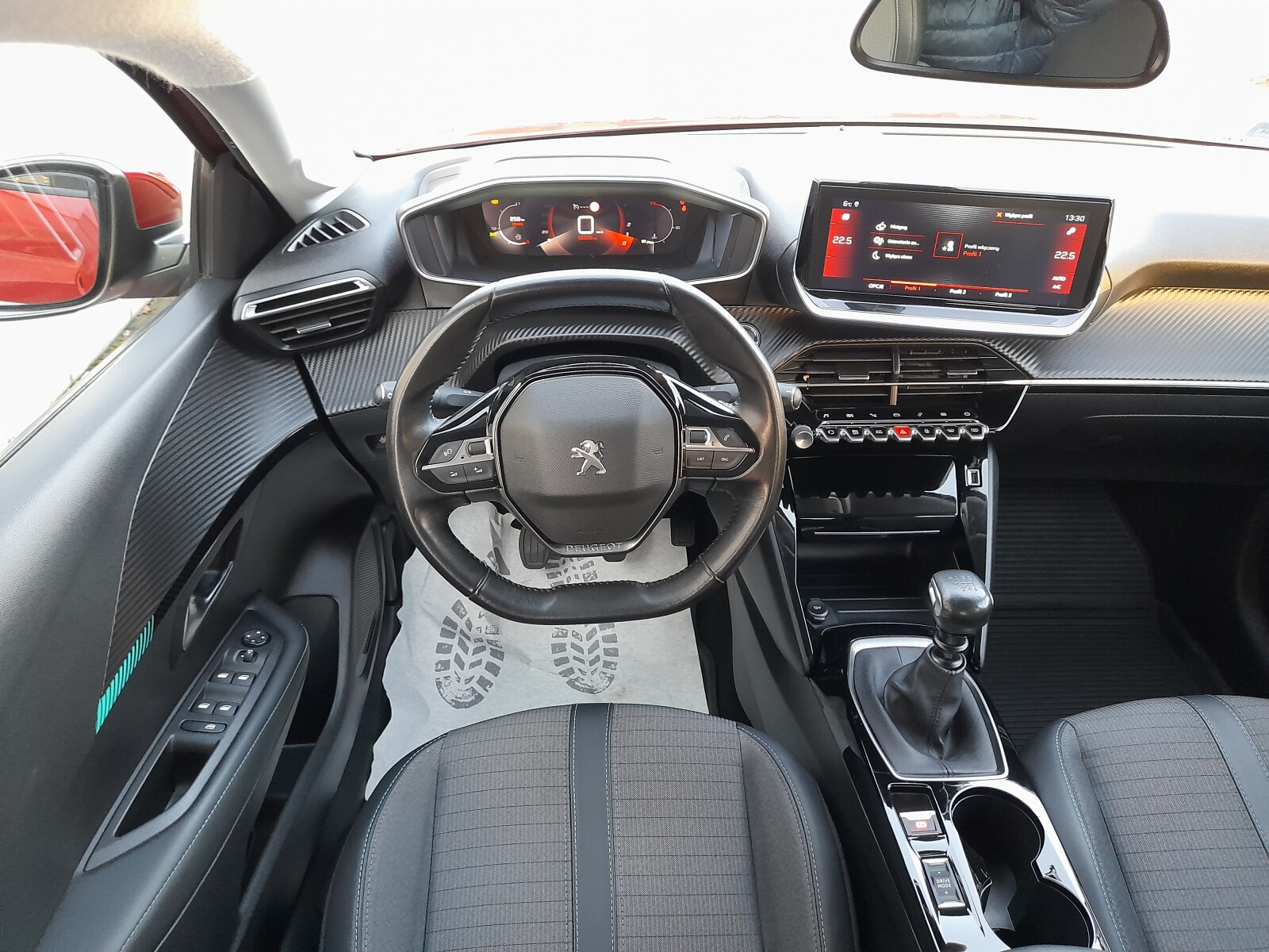 Deska rozdzielcza pokryta miękkim tworzywem i panele drzwiowe wykończone w stylu Carbon